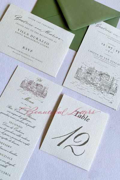 Your wedding day is a story told through emotions, where every detail speaks about you. To make the atmosphere of your wedding day truly unforgettable, we create unique stationery suites, entirely handmade with the mastery of nib and brush.