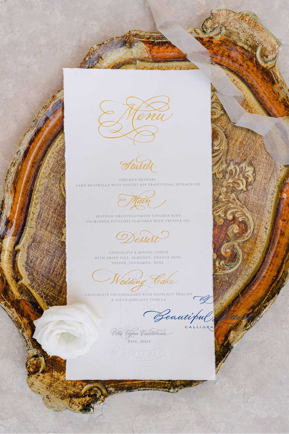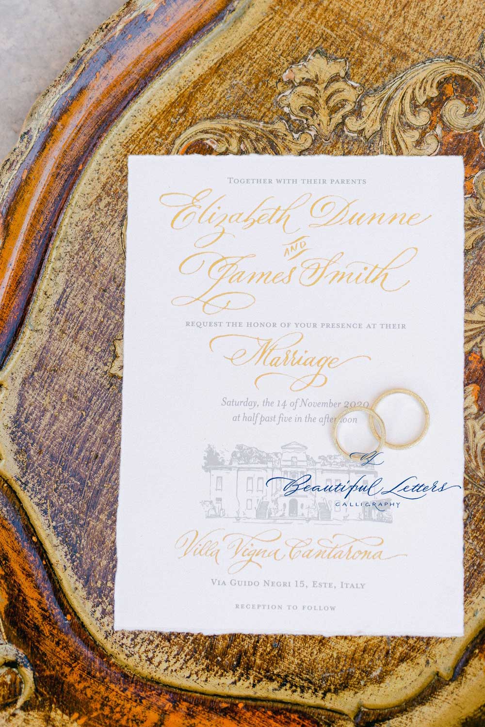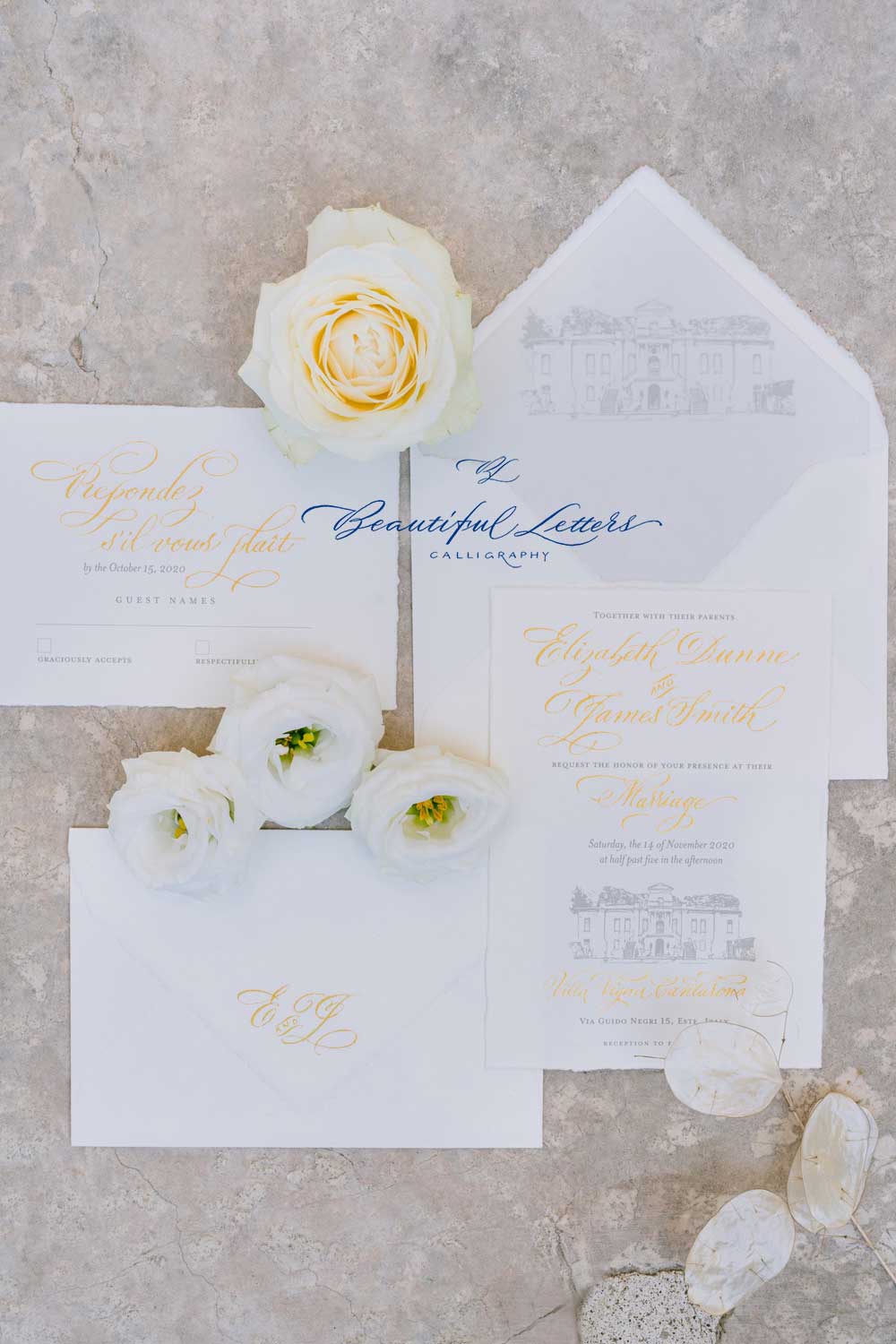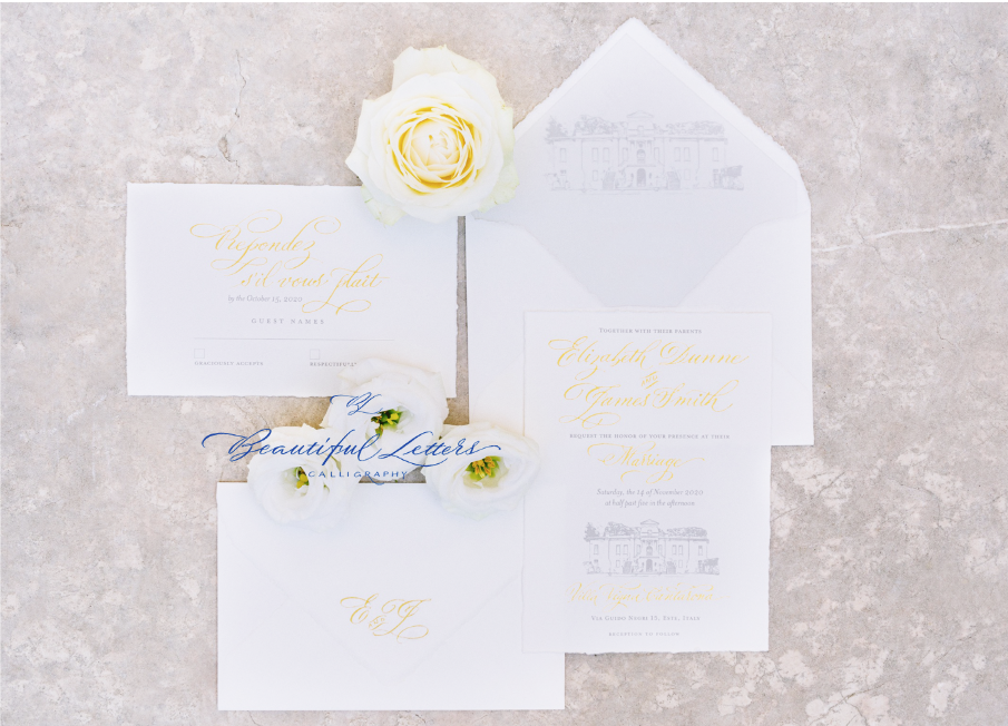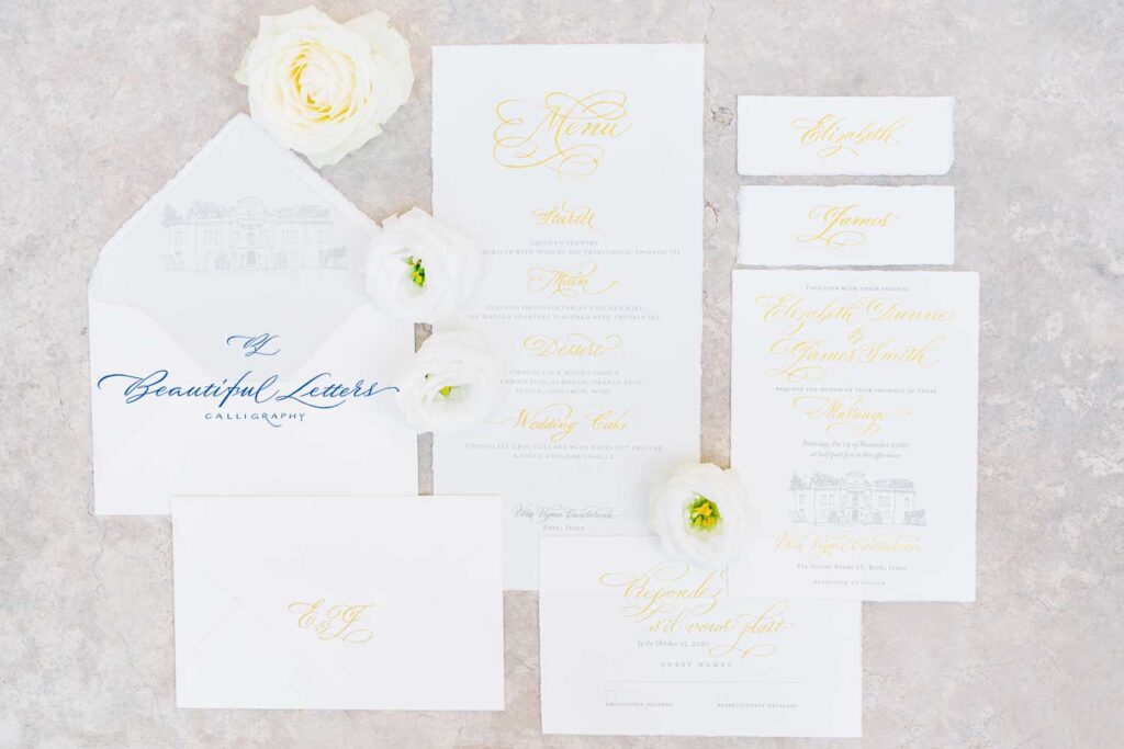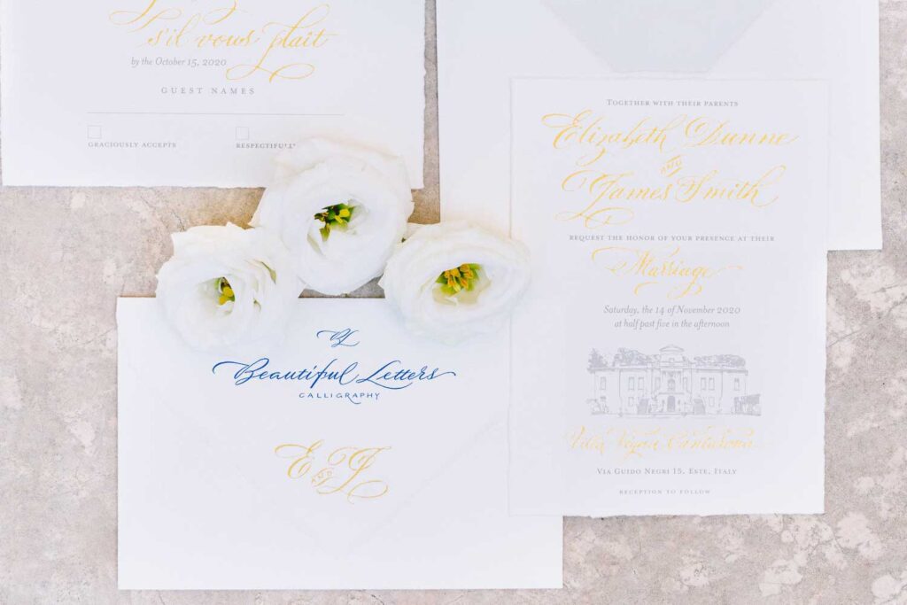 This shoot is the perfect fit for a bride seeking elegant, luxe inspiration for their wedding in Italy, with wedding suite calligraphy!