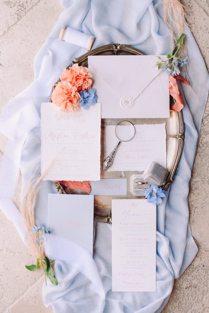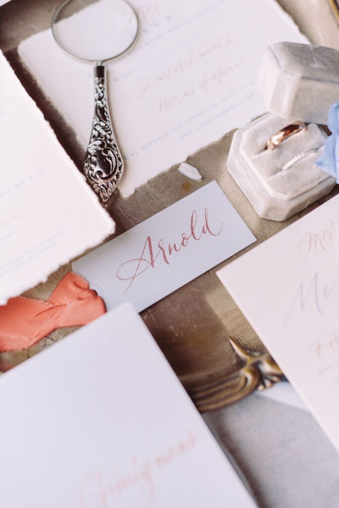 Invitations for a sophisticated wedding in Italy, created by our calligraphy and graphic design.