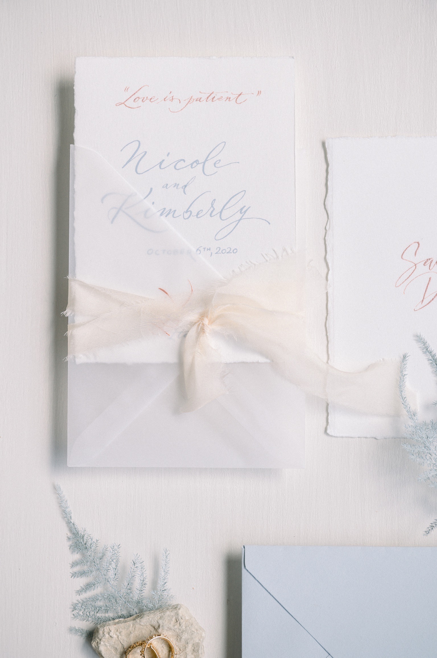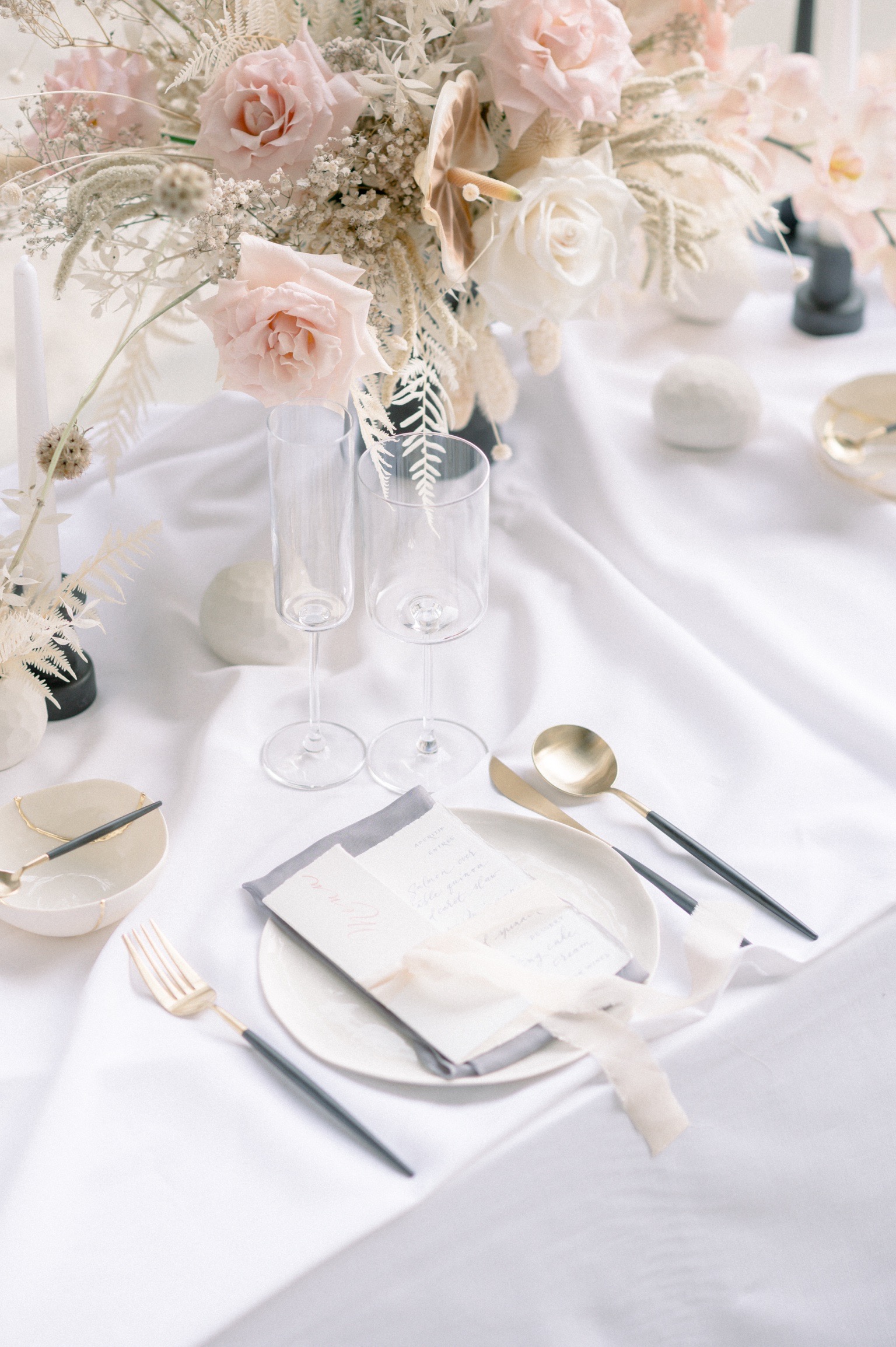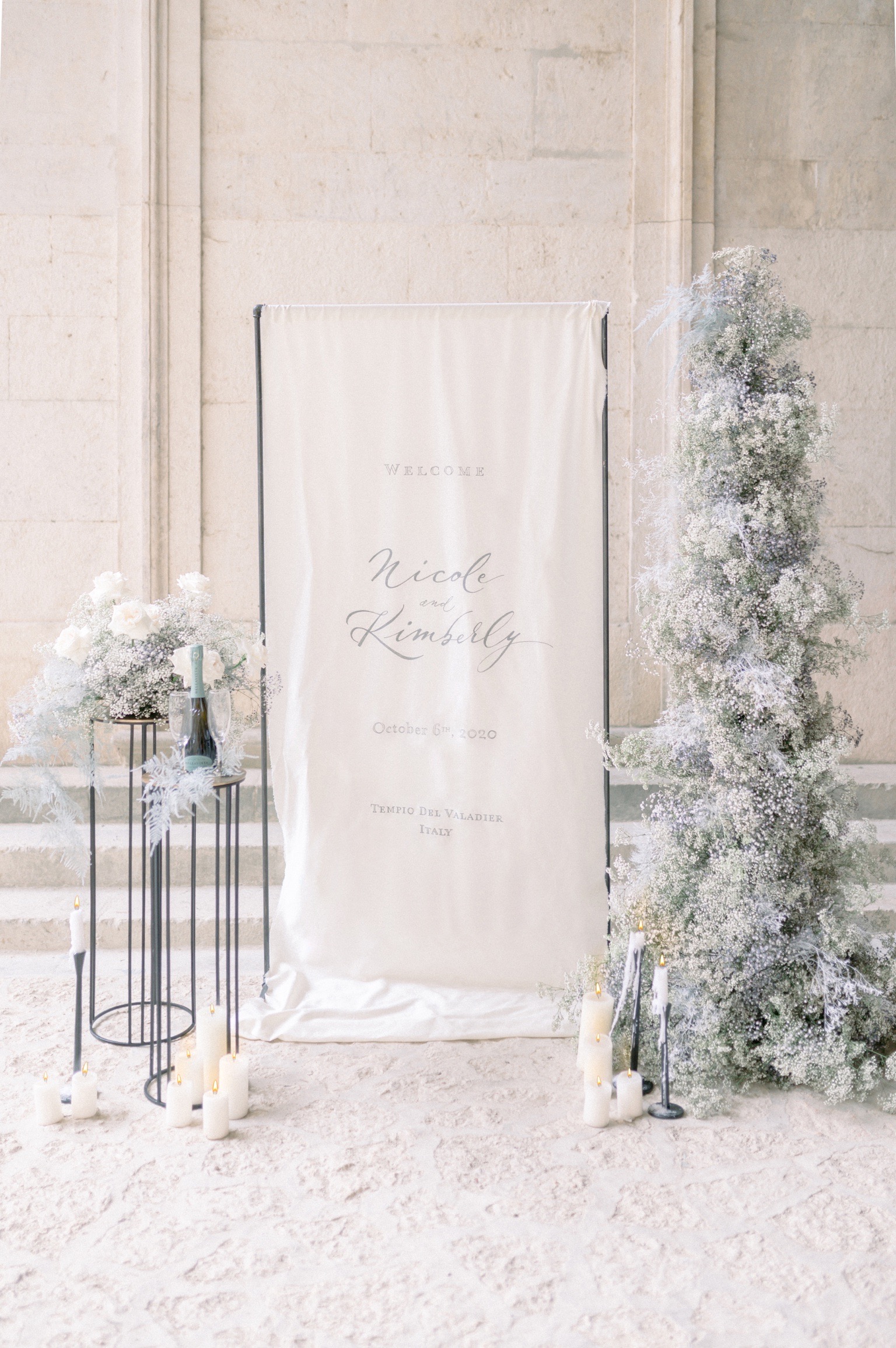 Cristina and Marco of Beautiful Letters developed the entire calligraphed stationery, started from the “welcome” on the cotton cloth to the menu. They used fine cotton paper and custom modern calligraphic style. All pieces are adorned with silk knots.