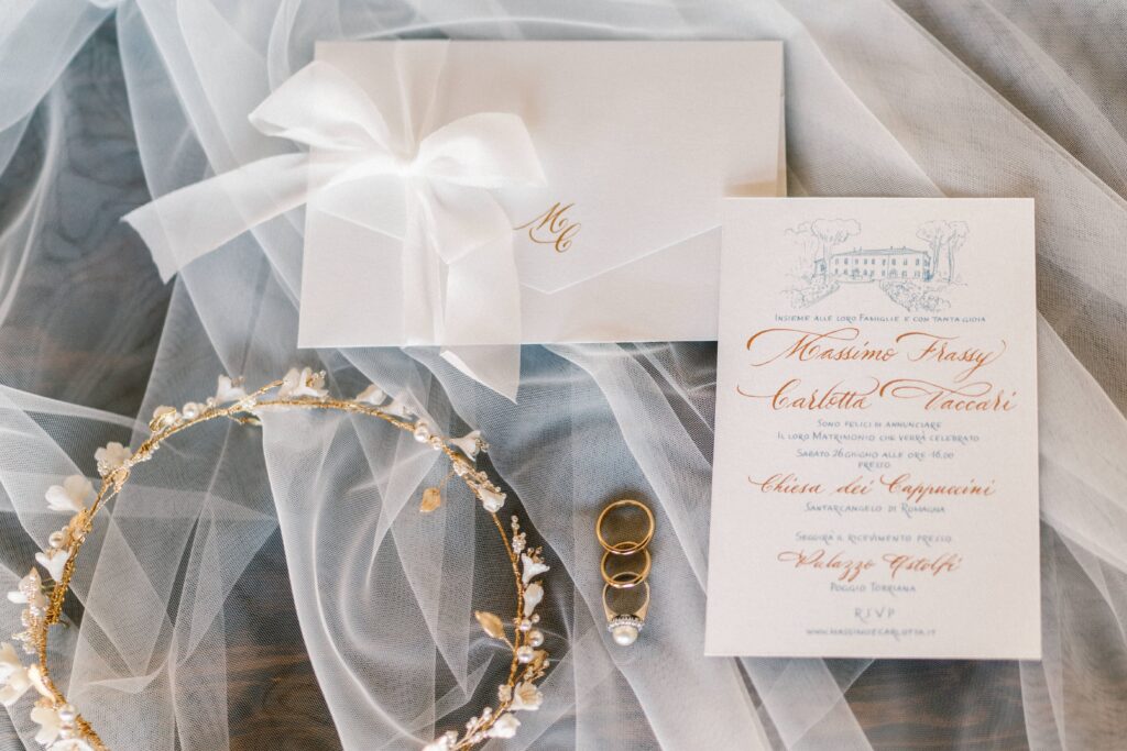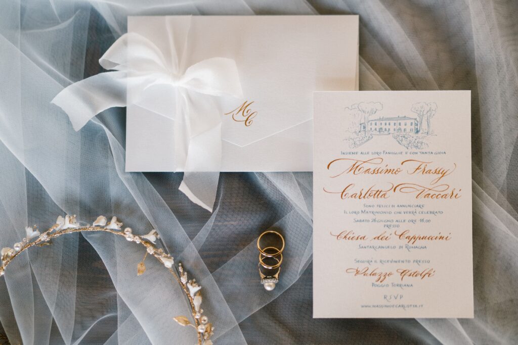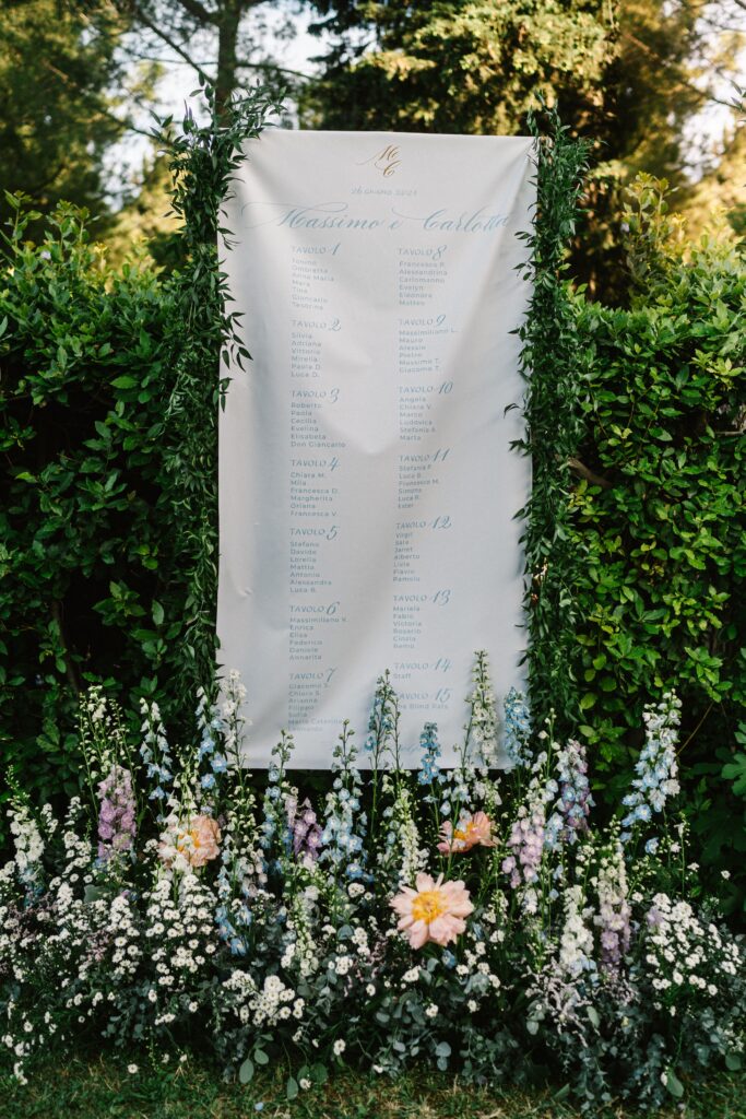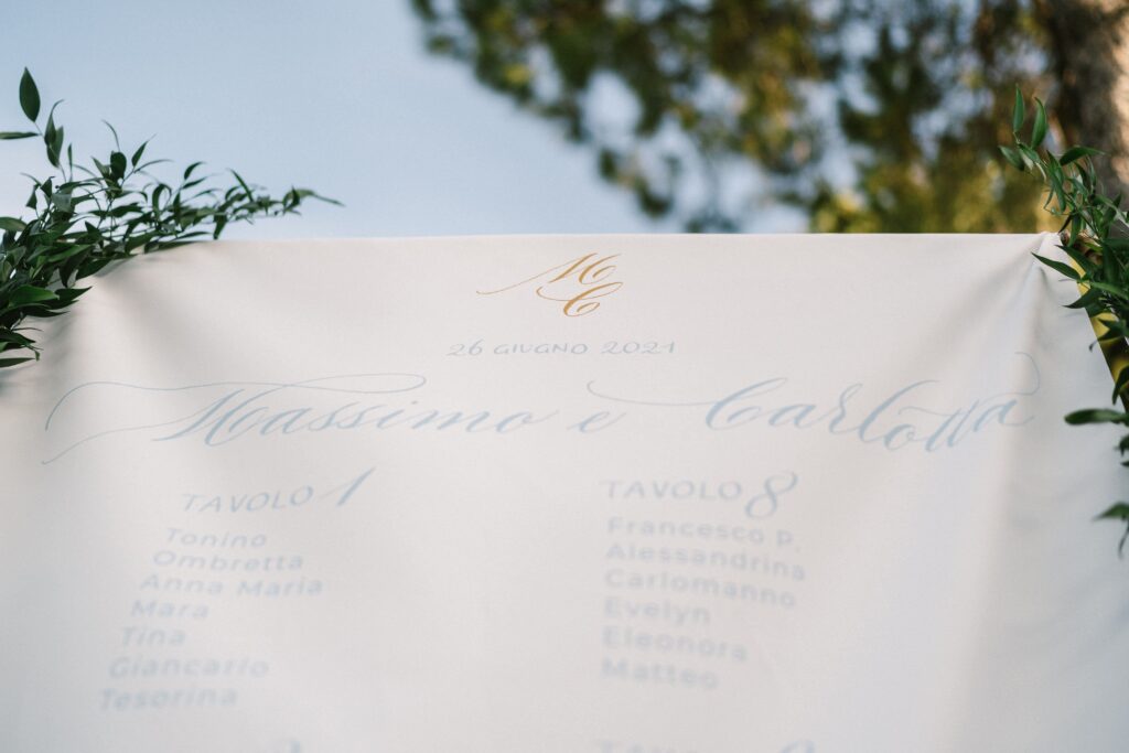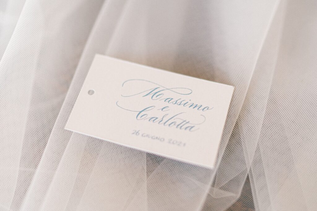 For Massimo and Carlotta’s wedding we have created everything you need, from invitations to the tableau de mariage, menus to ceremony booklets, cards for sugared almonds and gift bottles.