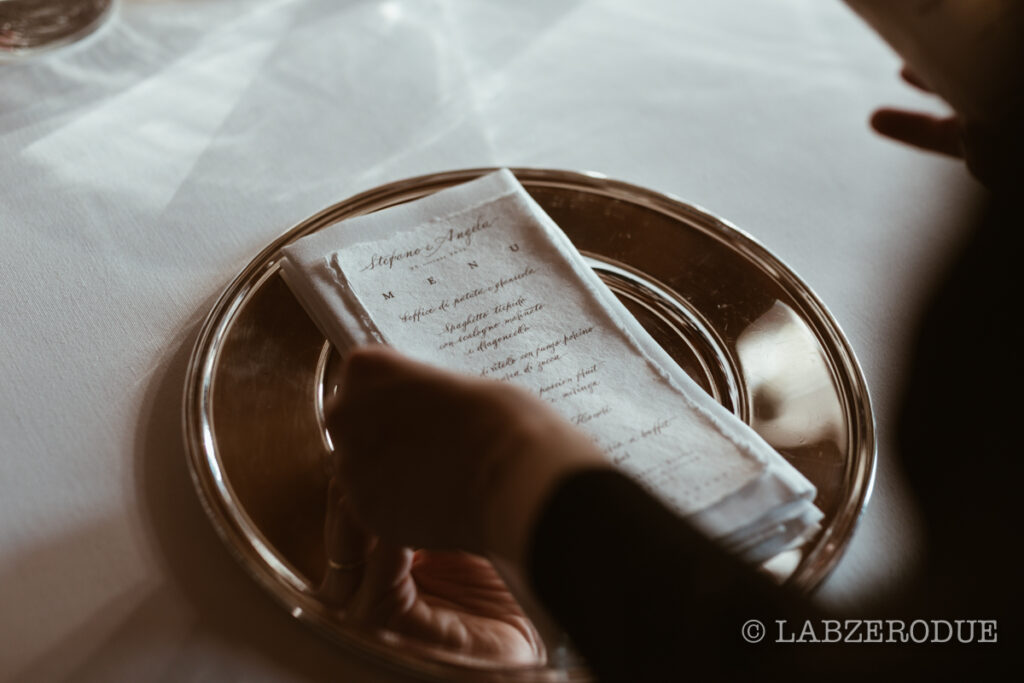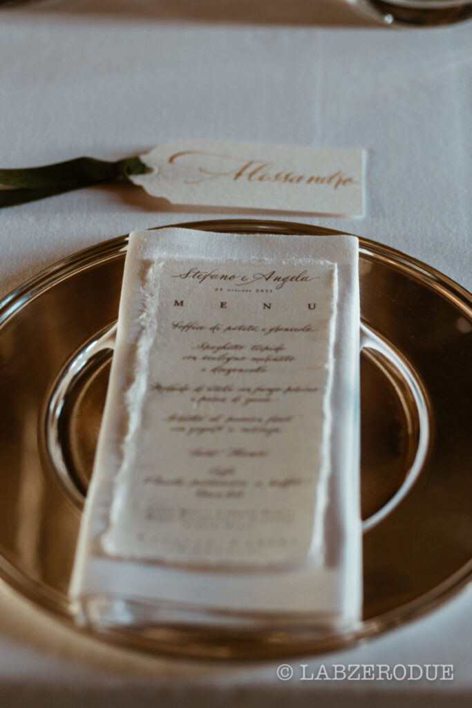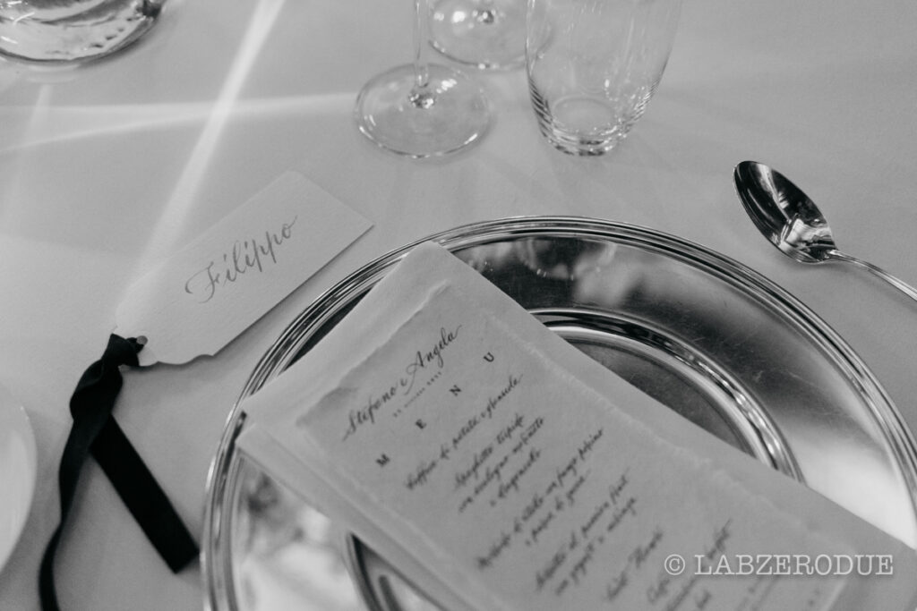 for an Italian couple with great style. We made for them the calligraphic invitations, the hand drawing of the location, the place cards and the menus. Have you seen that sophisticated mise en place?