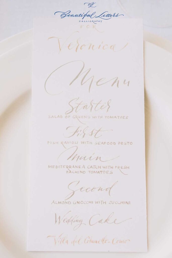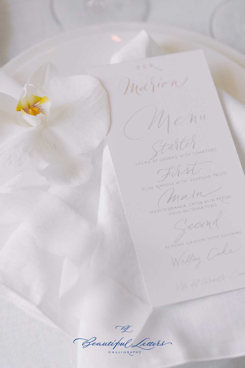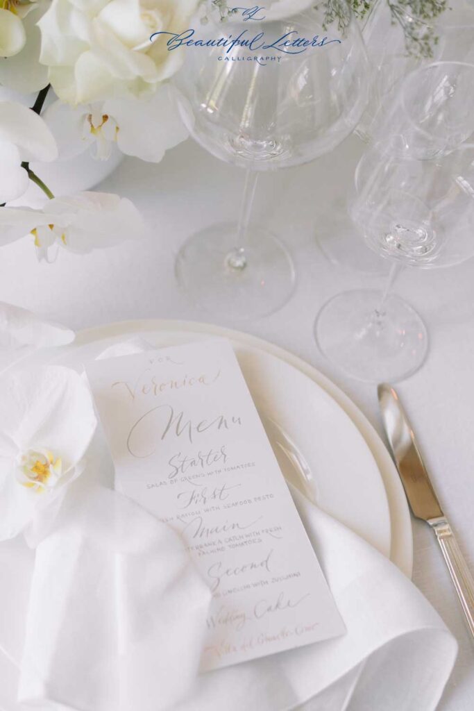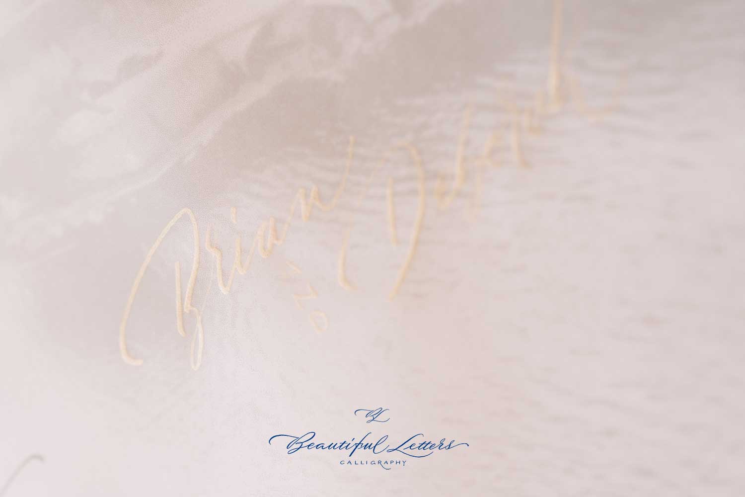 Admire our calligraphic creation, written with a nib, in the colors of white, silver and moon gold.